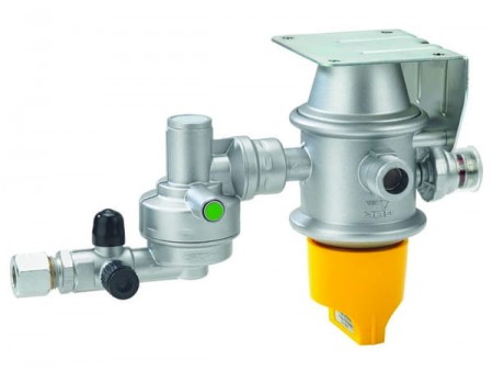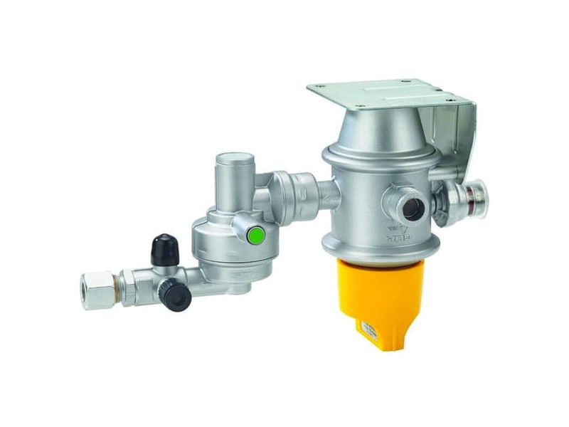 automatyczny przełącznik, reduktor niskiego ciśnienia z wydmuchowym zaworem bezpieczeństwa (PRV), mechaniczny czujnik zderzenia, przycisk, wskaźnik rezerwy, zawór zwrotny, zestaw kontrolny i uchwyt ścienny.