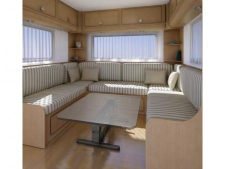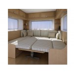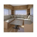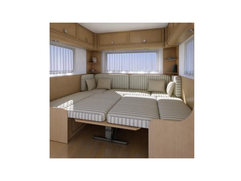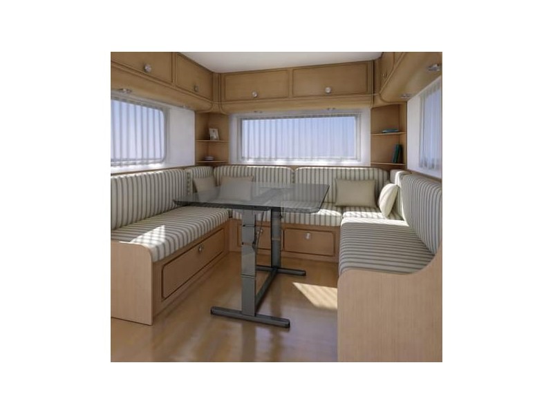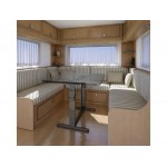 Stelaż składany stołu renomowanej firmy Kessebohmer. Idealnie nadaje się do zastosowania w przyczepie kempingowej lub kamperze. Dzięki stelażowi, w łatwy sposób możemy zmienić miejsce do siedzenia w wygodne łóżko. Stelaż składany za pomocą wygodnej i prostej w obsłudze rączki. Lekka konstrukcja, z wysoką rozpórką łączącą, w celu uzyskania większej przestrzeni na nogi (korzyść w przypadku wąskich grup siedzeń).