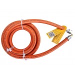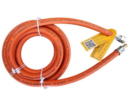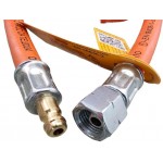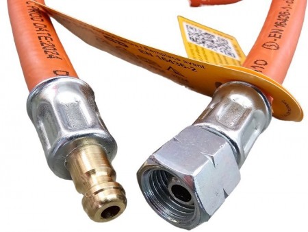 Wąż gazowy o długości 500 cm z końcówką na reduktor (lewy gwint) a z drugiej strony szybkozłączka (np. do gniazda gazowego z innych naszych aukcji).