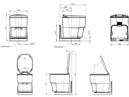Innowacja w dziedzinie mobilnych rozwiązań sanitarnych! Pierwsza na świecie mobilna toaleta, która do pracy nie potrzebuje wody! Dzięki Clesana C1 możesz spędzić noc poza kempingami, nie rezygnując z komfortu i czystości, do których jesteś przyzwyczajony. Zasada funkcjonowania toalety Clesana C1 L opiera się na technologii medycznej z termicznym zgrzewaniem worków foliowych. Po włożeniu dedykowanych foliowych worków do miski toalety, Clesana jest gotowa do użycia. Wkład workowy umożliwia do 36 wizyt w toalecie. Po każdej wizycie, wystarczy zamknąć klapę a następie nacisnąć odpowiedni przycisk na panelu sterowania. W tym czasie fekalia trafiają do worka i zostają automatycznie zamknięte hermetycznie, za pomocą metody zgrzewania termociśnieniowego. Do pracy toaleta wymaga napięcie 12V. C1 L zużywa niewiele prądu, w trybie czuwania jest to tylko 0,14 W. Następnie system automatycznie odnawia „wykładzinę foliową” i jest gotowy do kolejnego użycia. Panel sterujący pokaże nam gdy nadejdzie czas opróżnienia komory ze zgrzanymi workami. Bezwonne, hermetycznie zapakowane worki wystarczy wyjąc z komory pod toaletą i wyrzucić do zwykłego kosza na śmieci. Komora mieści 8 zgrzanych worków. Świeży worek wystarcza na 36 zastosowań. Taśma PTFE używana do zgrzewania podpasek ma żywotność około 1500 cykli. Taśmę PTFE można zakupić w naszej ofercie art.nr. 301/724. Worki foliowe nie są w zestawie z toaletą! Można je kupić w naszej ofercie art.nr. 301/722 (w zestawie z toaletą jest tylko mały zestaw startowy worków). Toaleta posiada samo opadającą deskę!