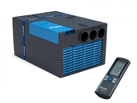 Truma Saphir Saphir Comfort RC to klimatyzator o mocy 2400W z funkcją pompy ciepła o mocy 1700W. To kompaktowe i lekkie urządzenie, opracowane specjalnie do użytku w przyczepach kempingowych i samochodach kempingowych, przeznaczone do montażu wewnątrz pojazdu. Powoduje to przesunięcie środka ciężkości w dół. Dzięki kompaktowym wymiarom urządzenie te mieści się na przykład w każdym standardowym siedzeniu w przyczepie kempingowej lub kamperze. Pod względem masy systemy z rodziny Saphir okazują się wyjątkowo lekkie, szczególnie dzięki specjalnej technologii obudowy EPP i wyznaczają standardy dla nowoczesnych urządzeń klimatyzacyjnych. Temperatura jest ustawiana i regulowana w pełni automatycznie za pomocą przejrzystego pilota na podczerwień, a działanie systemów można programować za pomocą zintegrowanego timera. Strumień schłodzonego i osuszonego powietrza jest równomiernie rozprowadzany po całym wnętrzu za pośrednictwem co najmniej 3 regulowanych nawiewów. Opcjonalnie można również, dokupić rury oraz wyloty powietrza a następnie rozprowadzić instalacje po pojeździe, dzięki czemu zimne powietrze jest jeszcze efektywniej rozprowadzane po przyczepie kempingowej lub kamperze (przykładowy schemat widoczny jest na zdjęciu nr 4). Dzięki standardowemu zastosowaniu filtrów cząstek stałych systemy Saphir są odpowiednie także dla alergików, gdyż jednocześnie oczyszczane jest też powietrze. Dzięki rewersyjnemu systemowi cyrkulacji chłodzenia może być również stosowany jako grzejnik z pompą ciepła. Urządzenie o mocy grzewczej 1700W generuje przyjemne ciepło, szczególnie wiosną i jesienią.