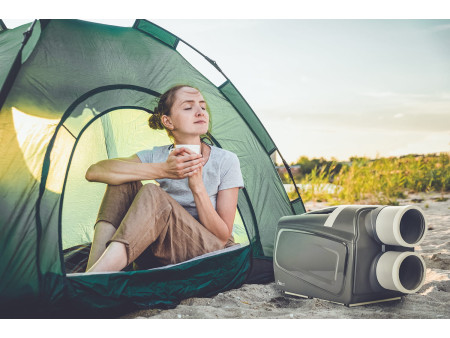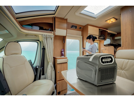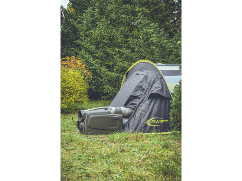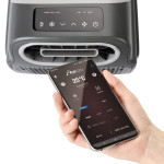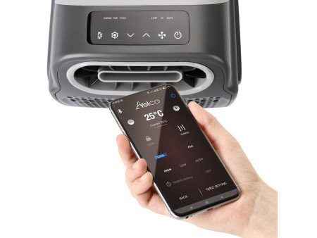 Urządzenie może być sterowane za pomocą aplikacji mobilnej lub dołączonego pilota. Intuicyjny panel sterowania z wyświetlaczem ułatwia obsługę, a poręczny uchwyt umożliwia wygodne przenoszenie. Klimatyzator wykorzystuje ekologiczny czynnik chłodniczy R290, który charakteryzuje się niskim współczynnikiem GWP, co ogranicza wpływ na środowisko. Elastyczne rury wlotowe i wylotowe pozwalają na swobodne ukierunkowanie przepływu powietrza, co zwiększa funkcjonalność urządzenia.