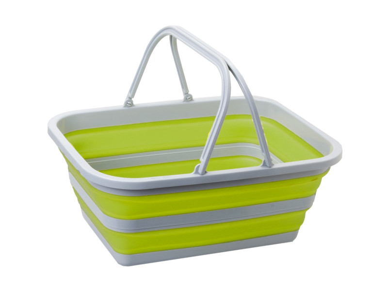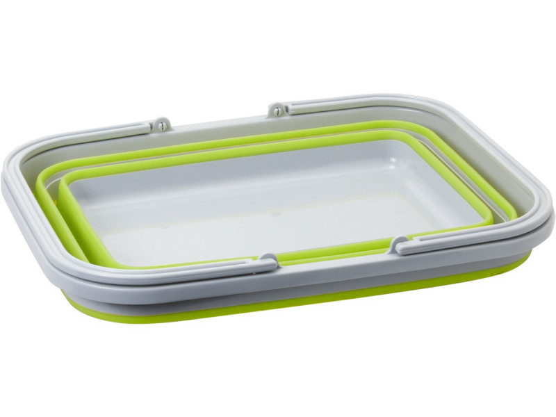 Składane wiadro / pojemnik / misa wykonana z wytrzymałego tworzywa sztucznego z uchwytami. Do użytku na zewnątrz. Składana misa Holdall Fold-Away to praktyczne rozwiązanie dla osób potrzebujących kompaktowego pojemnika np. na naczynia lub przenoszenia wody podczas biwakowania i aktywności outdoorowych.