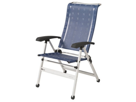 Lekkie, aluminiowe krzesło składane z wysokim oparciem (76 cm). Wzmocniona aluminiowa rama kwadratowa po wewnętrznej stronie zapewnia dodatkową stabilność. Posiada 8 stopni regulacji. Krzesło bardzo wytrzymałe i cenione na rynku. Idealnie nadaje się do zastosowania na kempingu!