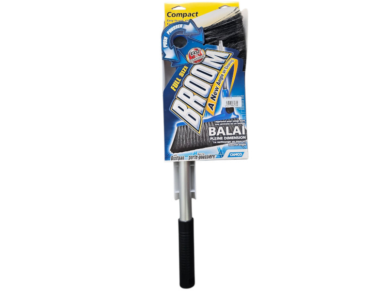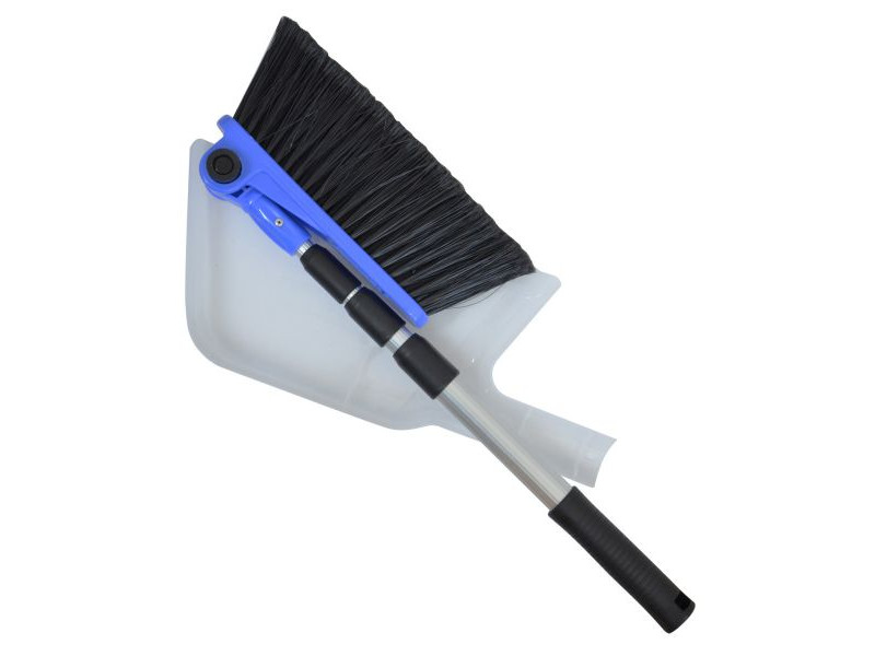 Nowoczesny zestaw sprzątający teleskopowa miotła i szufelka firmy Camco. Zestaw idealnie nadaje się do przyczepy kempingowej czy kampera. Wykonany z wysokiej jakości plastiku i aluminium. Zajmuje bardzo mało miejsca, jest lekki i poręczny. Pomysłowa składana miotła, jest idealna dla każdego biwakowicza. Dzięki przyciskowi, szczotka zwija się lub rozwija. Posiada teleskopowy aluminiowy trzonek, dzięki miotłę można rozwijać od 40 do 107 cm. Rozwijanie w łatwy sposób, wystarczy przekręcić trzonkiem. Możliwość rozwijania do trzech różnych długości. Wysokiej jakości, kompaktowa konstrukcja z pasującą szufelką.