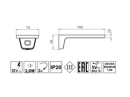 wymiar (długość x szerokość x wysokość): 160 x 79 x 50 mm,