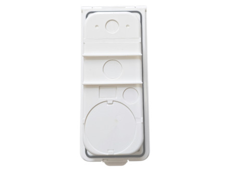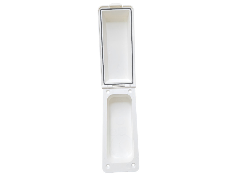 Gniazdo / obudowa / klapa serwisowa wykorzystywana w systemach sanitarnych, instalacjach wodnych, zewnętrznych przyłączeniach (np. w przyczepach, kamperach, instalacjach zewnętrznych). Gniazdo jest uniwersalne. Nie posiada żadnych wycięć (są tylko przetłoczenia). Wymagane otwory należy wykonać samodzielnie w zależności od chęci zastosowania Dzięki uszczelnieniu (uszczelce) przed bryzgami wody, gniazdo nadaje się do zastosowań zewnętrznych lub takich, gdzie istnieje narażenie na kontakt z wodą.