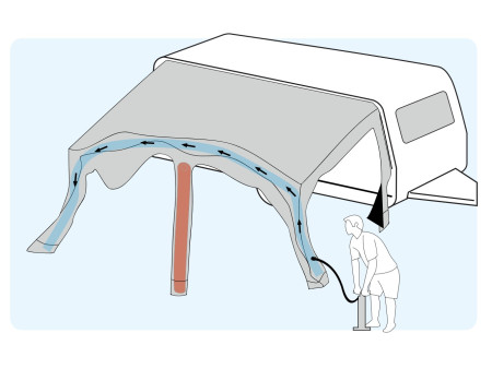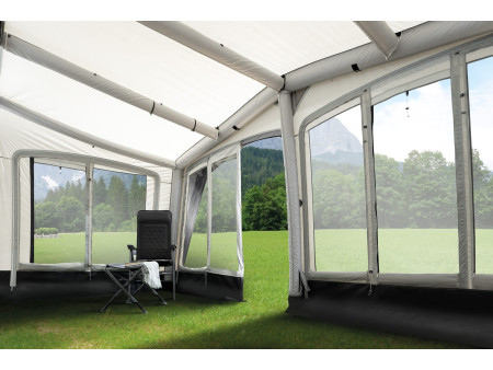 Pluto to dmuchany pompowany przedsionek do przyczep kempingowych, zaprojektowany z myślą o szybkim montażu i wysokim komforcie użytkowania. Dzięki konstrukcji opartej na Advanced Air System® (AAS) jego rozstawienie jest szybkie i proste. Przedsionek jest wsuwany na całej długości w listwę kedrową przyczepy, co pozwala na swobodne otwieranie okien, drzwi oraz klap serwisowych, a jednocześnie skutecznie uszczelnia boki przyczepy przed wiatrem i opadami.