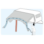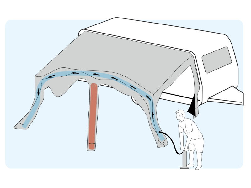 Pluto to dmuchany pompowany przedsionek do przyczep kempingowych, zaprojektowany z myślą o szybkim montażu i wysokim komforcie użytkowania. Dzięki konstrukcji opartej na Advanced Air System® (AAS) jego rozstawienie jest szybkie i proste. Przedsionek jest wsuwany na całej długości w listwę kedrową przyczepy, co pozwala na swobodne otwieranie okien, drzwi oraz klap serwisowych, a jednocześnie skutecznie uszczelnia boki przyczepy przed wiatrem i opadami.