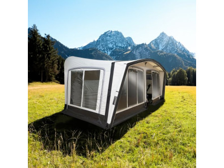Pluto to dmuchany pompowany przedsionek do przyczep kempingowych, zaprojektowany z myślą o szybkim montażu i wysokim komforcie użytkowania. Dzięki konstrukcji opartej na Advanced Air System® (AAS) jego rozstawienie jest szybkie i proste. Przedsionek jest wsuwany na całej długości w listwę kedrową przyczepy, co pozwala na swobodne otwieranie okien, drzwi oraz klap serwisowych, a jednocześnie skutecznie uszczelnia boki przyczepy przed wiatrem i opadami.