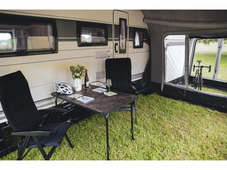Zastosowany materiał HydroTech® CottonTouch (100% poliester) w połączeniu ze stałą wentylacją oraz przyciemnianymi oknami zapewnia przyjemną temperaturę wewnątrz przedsionka nawet w gorące, letnie dni. Ściana przednia oraz ściany boczne są odpinane i wyposażone w moskitiery, co umożliwia elastyczne dopasowanie konfiguracji przedsionka do aktualnych warunków i potrzeb użytkownika.