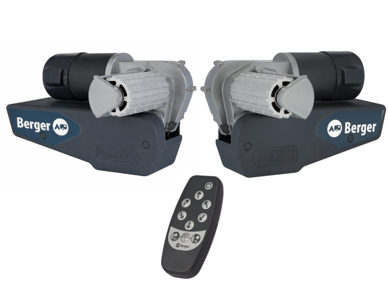 Napęd / mover Berger Platinum to w pełni automatyczny system manewrowy do przyczep kempingowych, zaprojektowany z myślą o maksymalnej wygodzie użytkowania. Rolki napędowe są automatycznie dociskane do kół za pomocą silników elektrycznych – bez użycia korby. Całość obsługi odbywa się z pilota zdalnego sterowania.