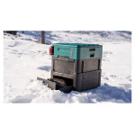 Toaleta nie wymaga podłączenia do wody ani stosowania płynów chemicznych. Do pracy potrzebuje zasilania 12V / 24V lub 230V (oba kable są w zestawie). Jest również możliwość zasilania z akumulatora 18 V (nie jest w zestawie). Akumulator wkłada się do toalety i wówczas działa ona bez podłączania kabli. Aby załadować akumulator, należy go wyciągnąć z toalety i naładować w ładowarce zewnętrznej tak jak np. w elektronarzędziach. System jest energooszczędny i przystosowany do użytkowania w kamperach, przyczepach oraz instalacjach off-grid.