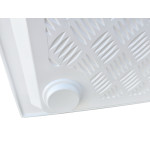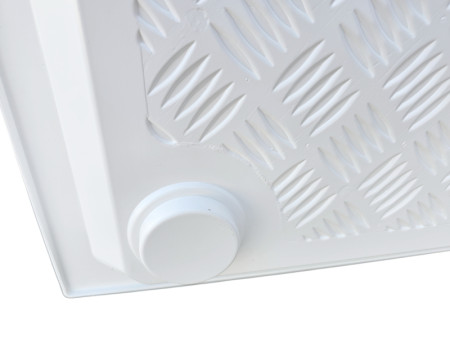 Brodzik z podwyższonymi bokami, zaprojektowany specjalnie do montażu w przyczepach kempingowych i kamperach, do kabin prysznicowych oraz instalacji na zamówienie. Podwyższone boki brodzika są podparte. Posiada odpływ pod podłogą pojazdu. Zintegrowane rowki zmniejszają ryzyko poślizgu. Wykonany z trwałego, gładkiego i łatwego w czyszczeniu tworzywa sztucznego ABS.