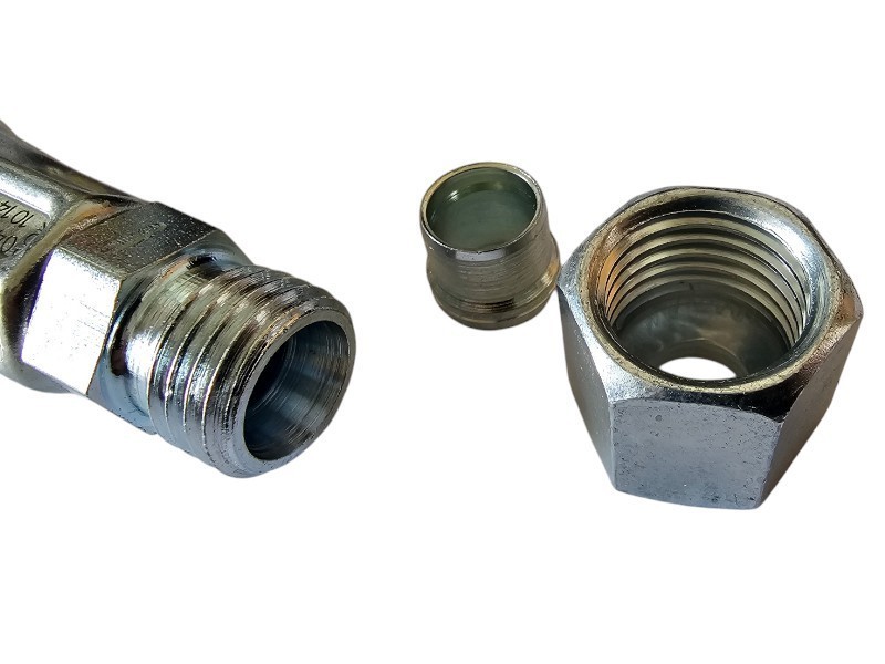 Z lewej strony: wejście na rurkę gazową 8 mm, wraz z nakrętką oraz pastylką uszczelniającą. Wystarczy włożyć rurkę i zakręcić aby uszczelnić połączenie.
