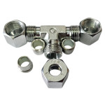 Trójnik do instalacji gazowej na rurkach 8 mm w przyczepie lub kamperze. Z trzech stron złączki znajdują się nakrętki wraz z pierścieniami uszczelniającymi. Z trzech stron złączki możemy szczelnie podłączyć rurkę gazową 8 mm.